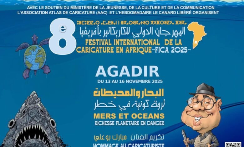 تستعد مدينة أكادير لاحتضان فعاليات الدورة الثامنة للمهرجان الدولي للكاريكاتير بإفريقيا (فيكا)، التي تُقام بدعم من وزارة الشباب والثقافة والتواصل، وتنظمها جمعية أطلس للكاريكاتير (AAC) والأسبوعية “لوكنار ليبيري”، وذلك في الفترة الممتدة من 13 إلى 16 نوفمبر الجاري.