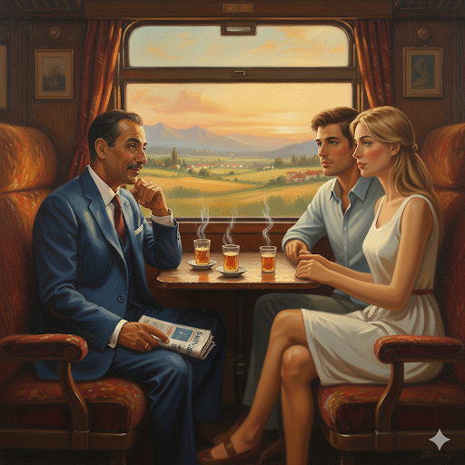 إلى جواره جلس شابان هولنديان، جون وماريا، يبدوان كمن اكتشف لوناً جديداً في لوحة الحياة. كان جون، في أوائل الثلاثينيات من عمره، يتنقل بعينيه بين الداخل والخارج، بين عربة القطار والمشاهد المتغيرة خلف النافذة، في حين كانت ماريا، في فستانها الصيفي البسيط، أشبه بزهرة برية تلتقط بعينيها الخضراوين أدق التفاصيل، بشغف الطفلة وحكمة المرأة.